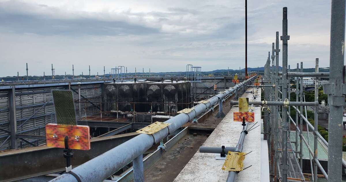 工場看板の外枠にハトが大量に止まってしまうため、撃退ドットマンで対策をしました。