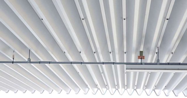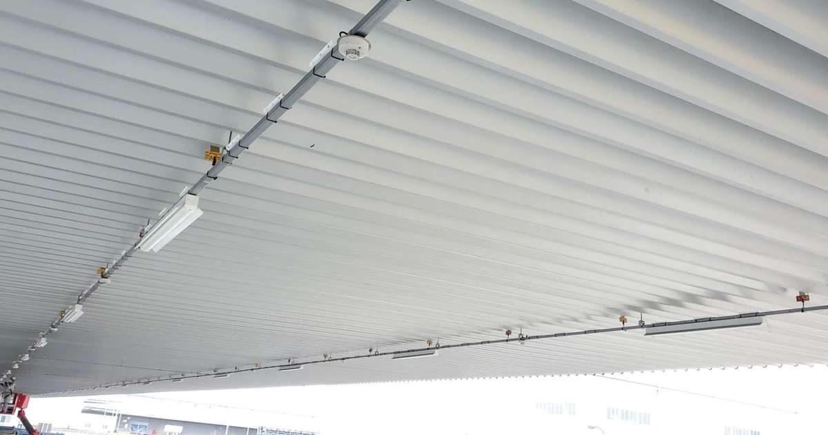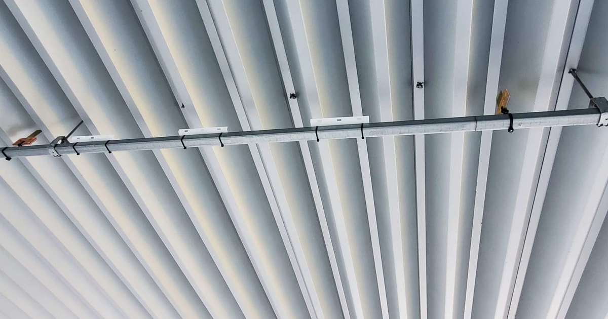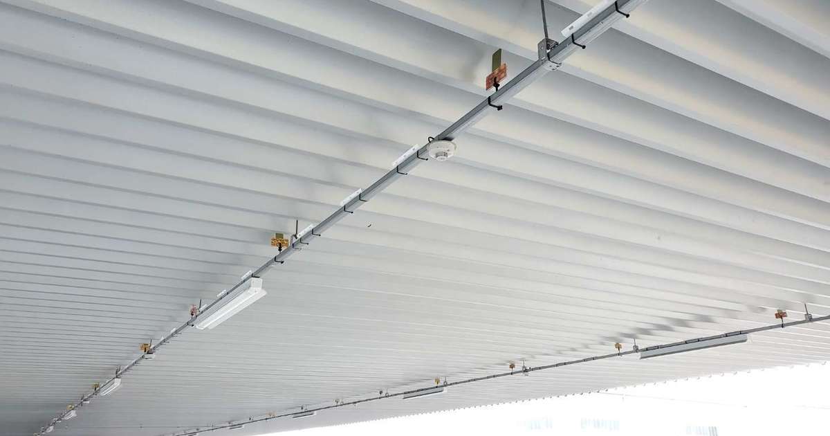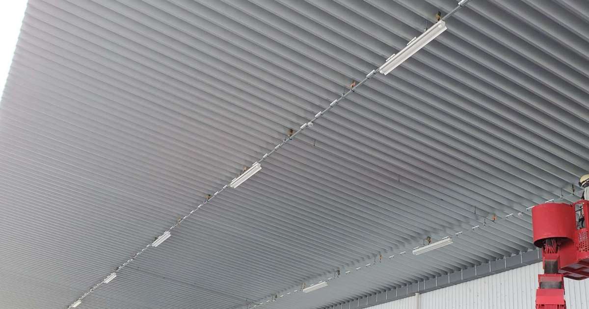倉庫内へのハトの侵入を防ぐために、侵入直前にとまる蛍光灯のレースウェイ部分を施工しました。