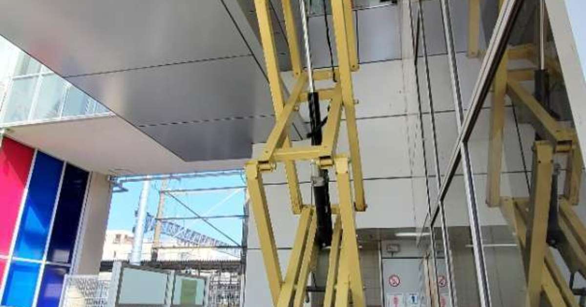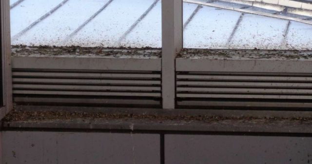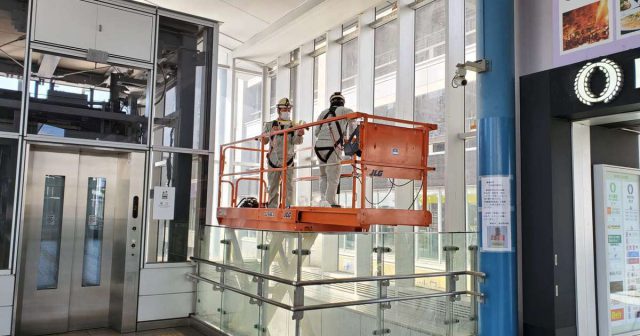 駅の吹き抜け部分からハトが侵入し、糞害がひどい場所の施工を行いました。