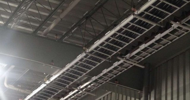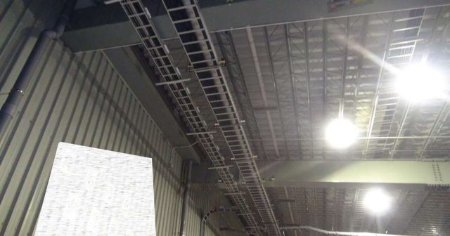 工場内にハトが出入りし糞害も多くありましたので、糞等が通路や商品に付着するのを防ぐ為に撃退ドットマンを施工しました。